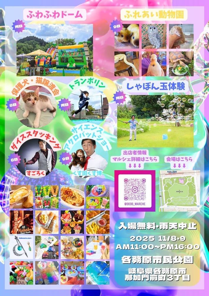 9696marché 大道芸スケジュール 2025/11/08(土) 各務原市民公園 地図を表示 最近多い!各務原市民公園にて大道芸させて頂きます! 特に時間は決まってないのでお客さんの流れを見ながら3回ほどやりたいと思ってます! URLをコピーする 報告する